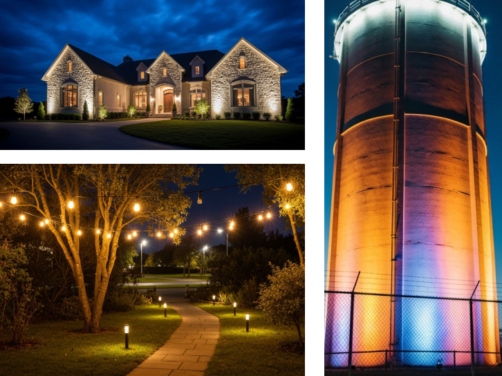 Properly placed outdoor lighting deters intruders, eliminates dark spots, and increases visibility, making your home or business significantly safer.
